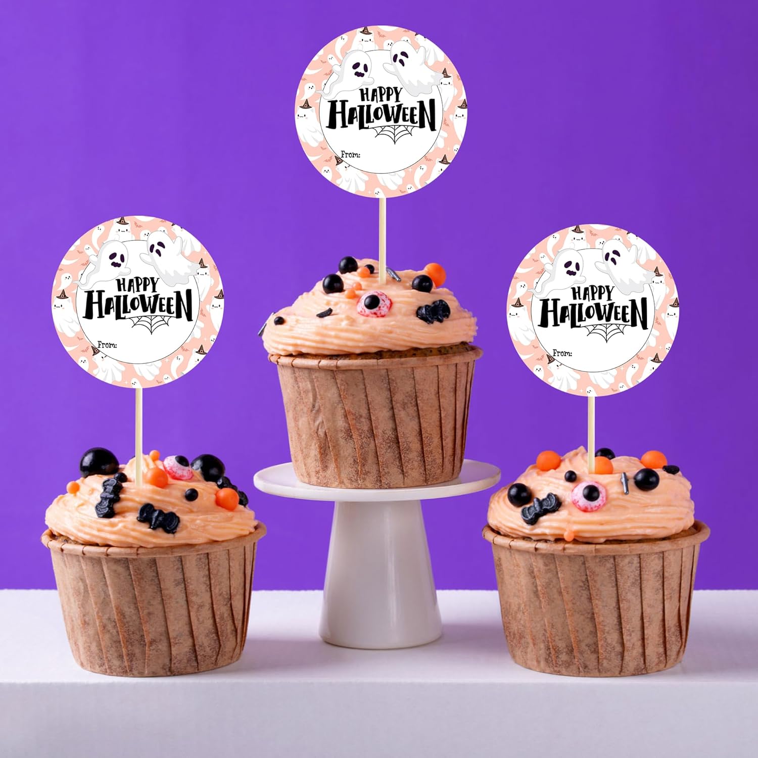 - Lovely Design: These Halloween from stickers designed with adorable Halloween ghosts in pink color background, printed with “Happy Halloween” and “from” text, look very lovely, kids will love them.