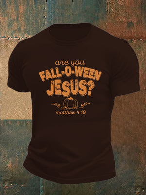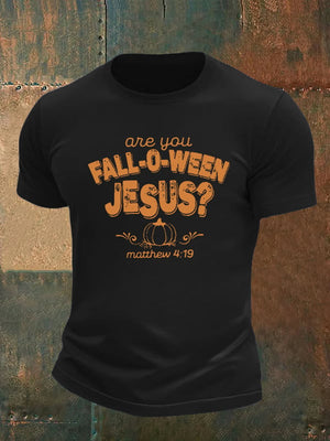 Men's are you FALL-O-WEEN JESUS print casual T-shirt