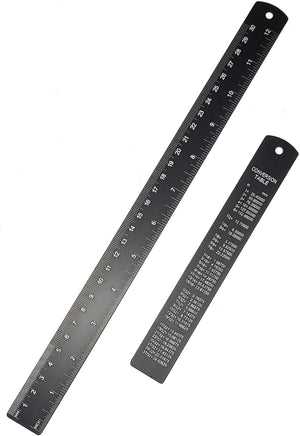 - 【High Quality Metal Rulers Set】: You will receive 2 pcs rulers (1pc 6inch and 1pc 12inch), both with conversion tables (inch and mm) on the back side, made of high-quality aerospace aluminum, surface anodized finish rust-resistant and prevents unnecessary nicks and bends.