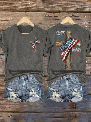 Women's STAND FOR THE FLAG, KNEEL FOR THE CROSS Print Casual T-shirt